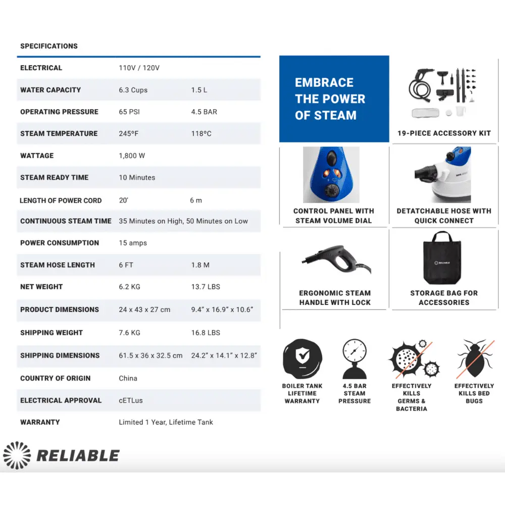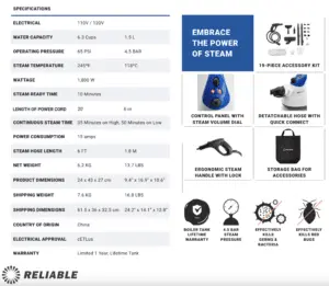 17-PIECE ACCESSORY KIT – The best steam cleaning methods include the use of superior quality accessories. Everything you need to get started is including a convenient portable carrying case. Our accessories deliver professional steam cleaning results… every time!