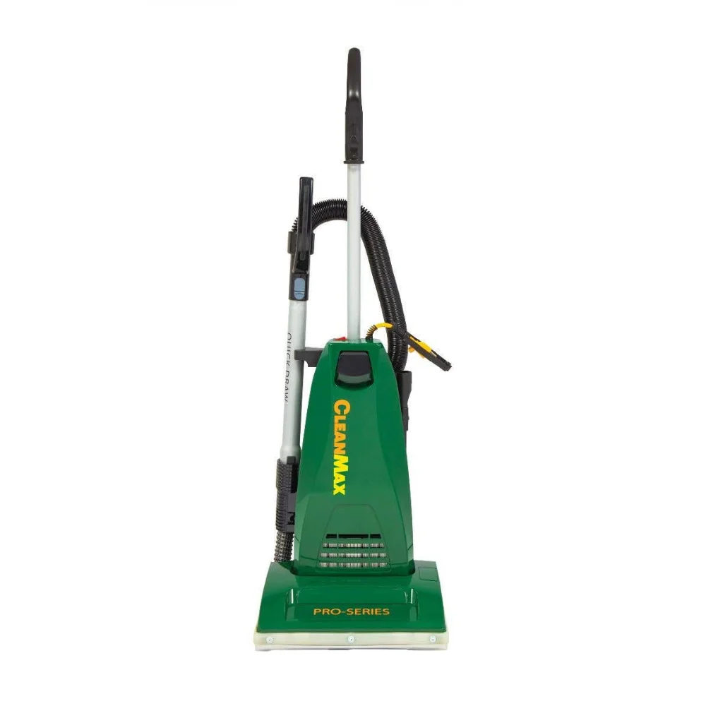 Pro-Series Upright, 10 Amps With Tools On-Board – This is a Pro-Series Upright, 10 Amps With Tools On-Board. CleanMax Pro-Series Upright Vacuum with Quick Draw Tools #CMP-3QD is built to stand up to the toughest cleaning challenges day after day. Metal components are used throughout the high-wear areas of the vacuum and the fan and motor are protected by the Clean Air System. But durability is only part of the story. With Quick Draw on-board tools, the CMPS-3QD vacuum’s powerful suction is available at your fingertips for above floor cleaning and the HEPA Media filter ensures what’s captured by the vacuum stays in the vacuum. Features: 10 AMP Capped Motor, Clean Air System, HEPA Media Filtration Standard, Thermal and Pressure Activated Motor Protection, Tool-Less Belt Change makes for quick and easy maintenance which reduces downtime, Quick Clean-Out Port provides easy access to clear away debris, Metal Handle, Cord Hook and Bottom Plate, Quick Draw Tools with 12″ Cleaning Reach, Aluminum Telescopic Wand, Metal Brushroll with Ball Bearings, 4 Rubber Wheels with Brass Bushings, 14″ Nozzle with Riveted Bumper Guard, Automatic Height Adjustment, 6.5″ Pigtail with (2) 30 foot Commercial Grade Cords.