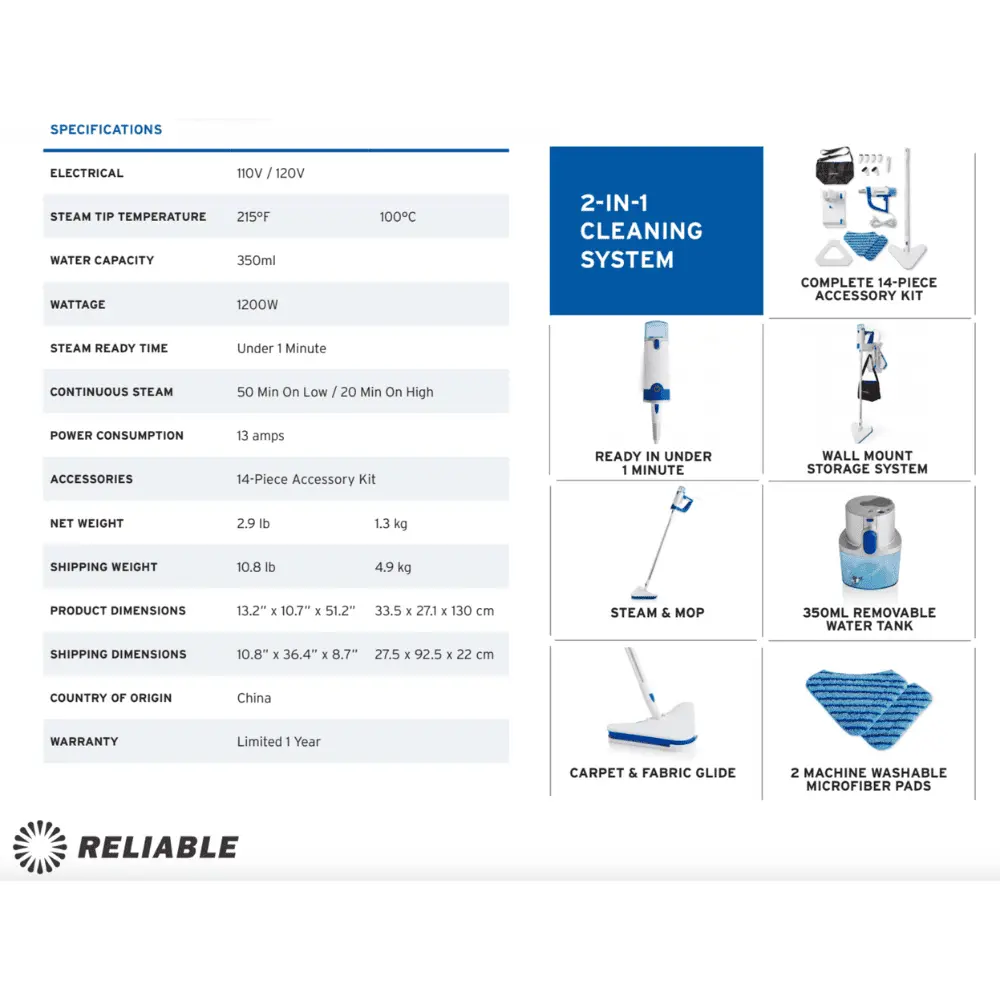 The Pronto Plus 300CS is a powerful, versatile 2-in-1 steam cleaning system that will streamline your cleaning regimen. The convertible design allows you to switch from a steam mop to a handheld unit with just the click of a button. Storage made easy with the included wall mount and accessories bag. The Pronto Plus 300CS is a safe, effective, and all-natural way to clean and sanitize without the use of any harsh chemicals. Perfect for any home.