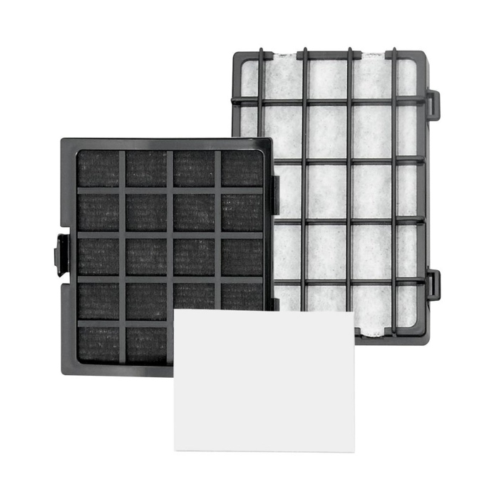 This replacement filter set for Riccar models R30P and Retriever R30PET captures odors protects the motor from dust and filters the exhaust air. This set includes a granulated charcoal filter cartridge a HEPA media filter cartridge and a direct air motor filter.