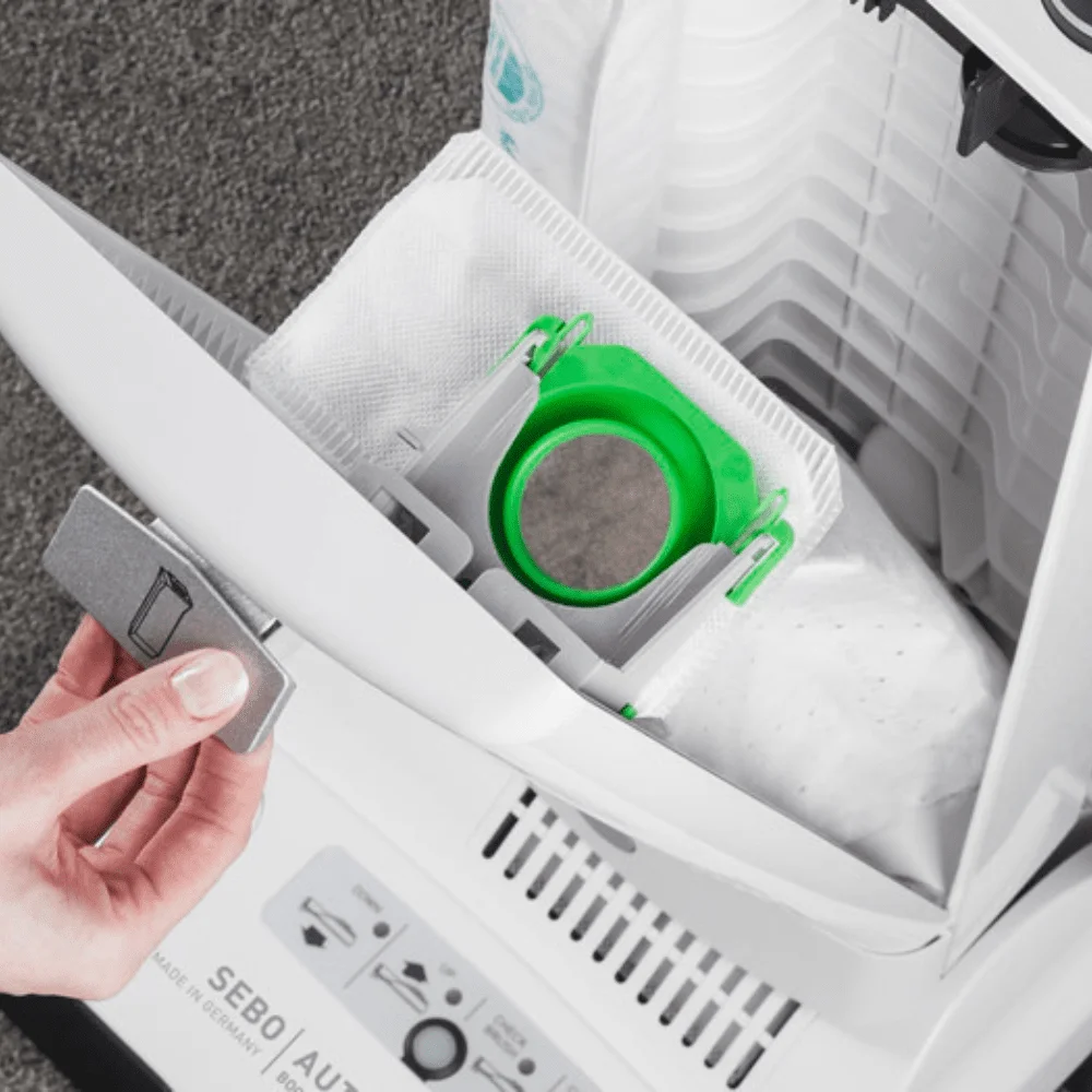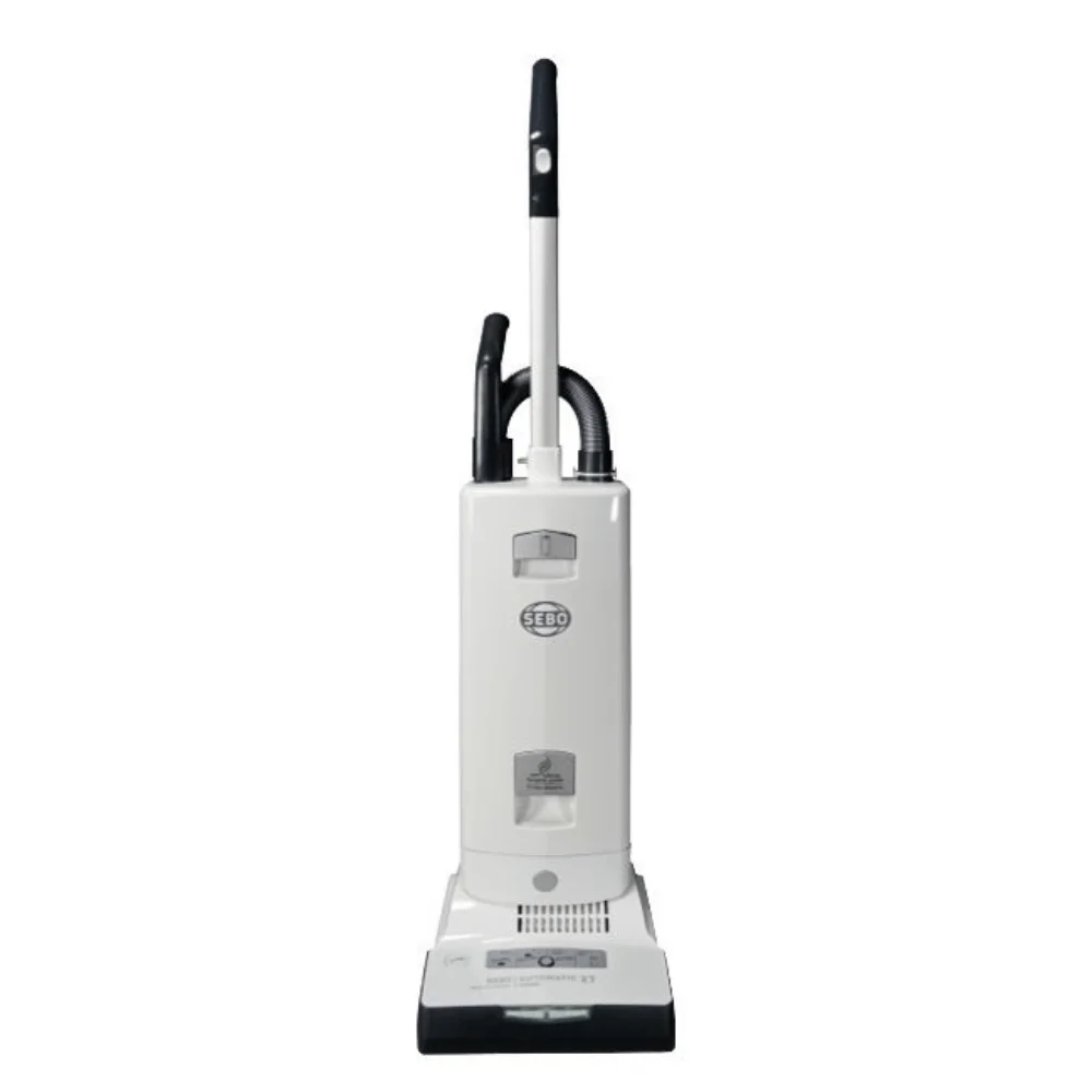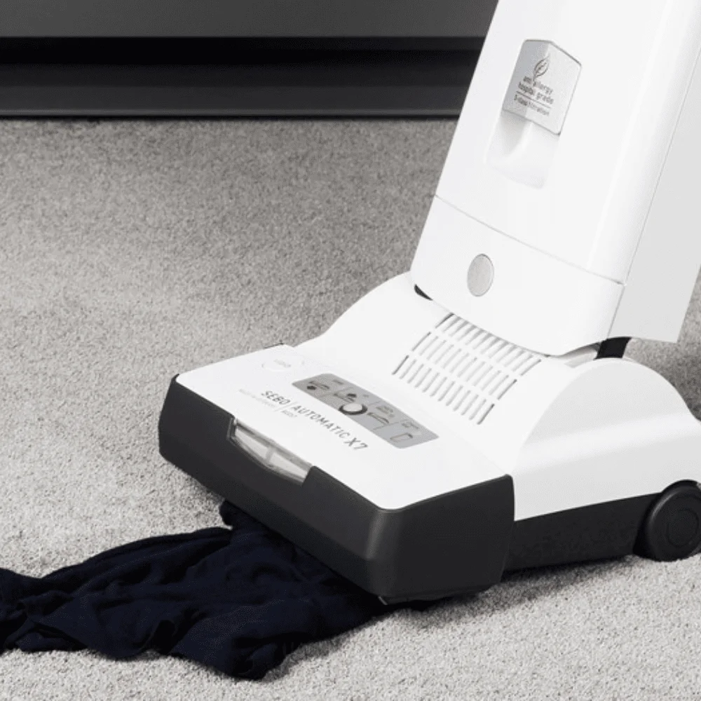The AUTOMATIC X is the world’s most technically advanced and uniquely easy-to-use vacuum cleaner! Available in two power head widths, the 12-inch X7 and 15-inch X8 feature truly automatic height adjustment, using an electronic controller that measures the resistance of the spinning brush roller against the floor surface to signal up or down adjustments, which ensures optimal performance on both carpets and hard floors. The user is also alerted to clogs, a worn brush, or a full bag, and the vacuum automatically shuts off when brush obstructions occur to protect the motor and belts from damage. The X also has an instant-use cleaning wand and suction hose, a lifetime belt warranty, tool-free brush roller removal, a 40-foot power cord, and three on-board attachments.