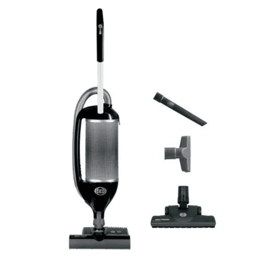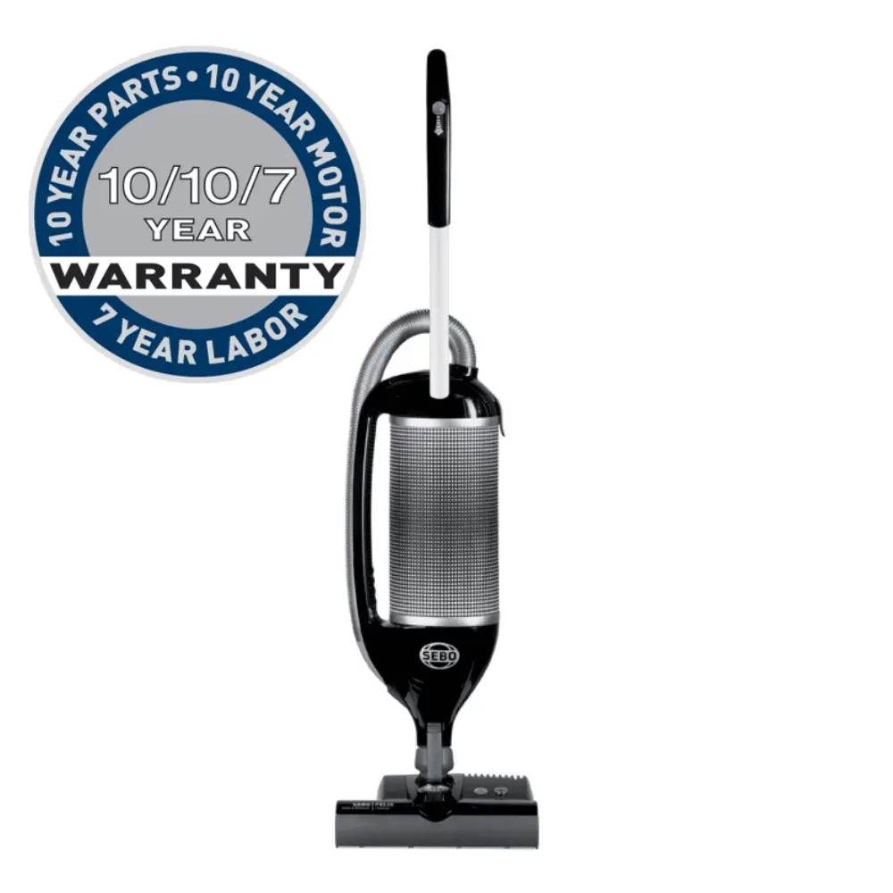 The FELIX 1 can morph into a floor polisher by attaching SEBO’s DISCO head. They also feature a “flex” neck with amazing 180° steering ability, variable suction control on a three-level adjustable handle, an ultra-modern filtration system, a detachable suction unit that becomes a hand-held vacuum, an instant-use suction hose, a full bag or clog indicator, a low 6-inch horizontal cleaning profile that fits under beds and furniture, a long 31-foot cord, and two on-board attachments.