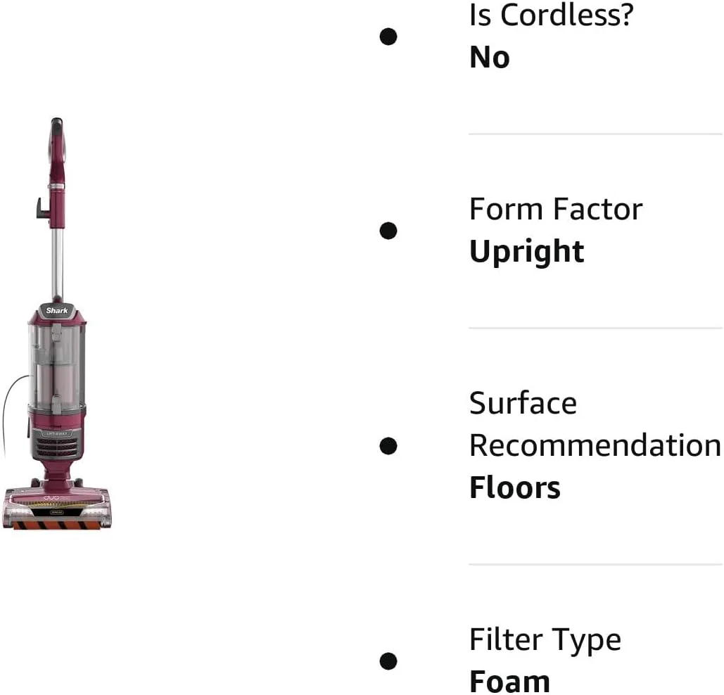 • Shark Rotator Lift Away DuoClean Pro with Self Cleaning Brushroll Upright Vacuum ZU780 XL Capacity Burgundy