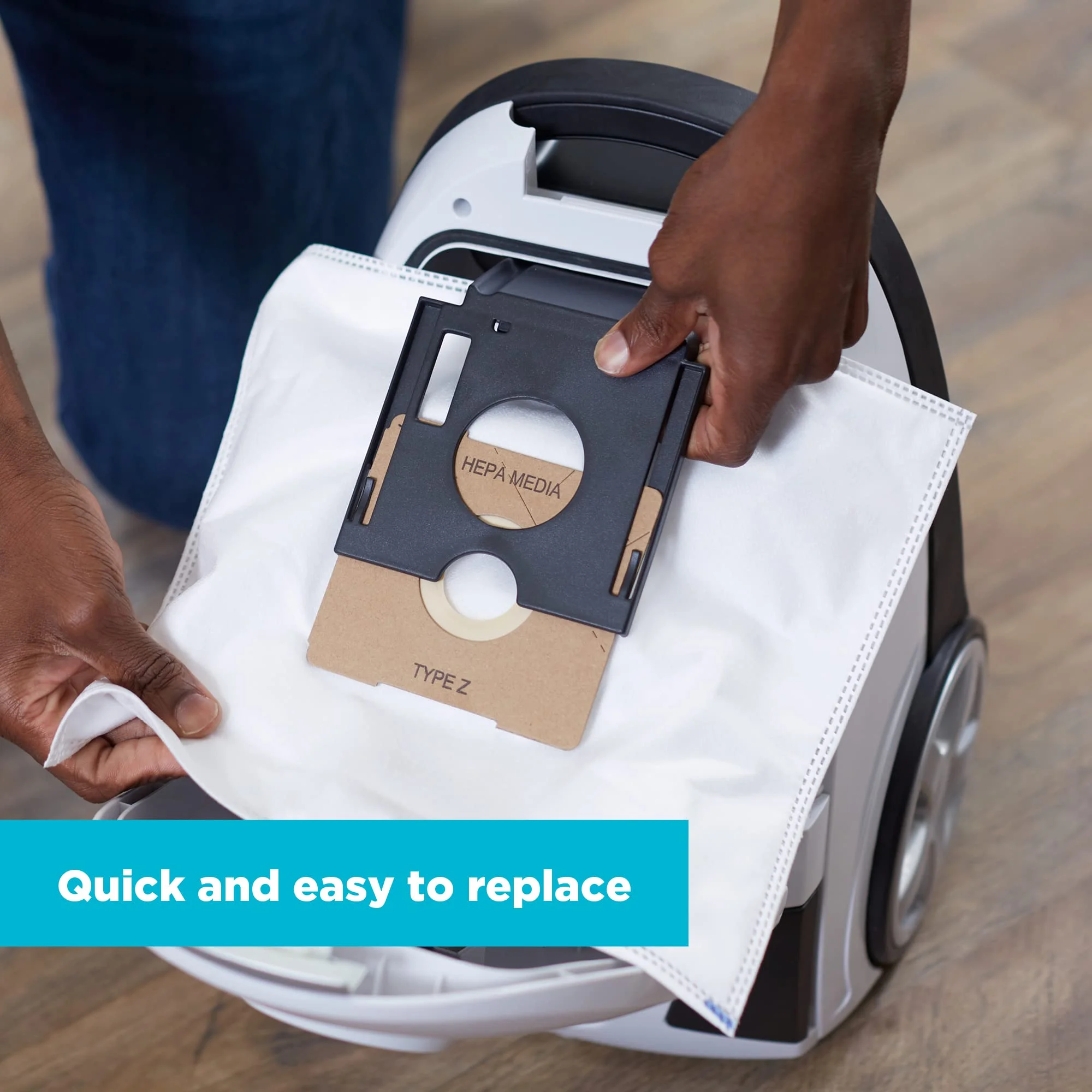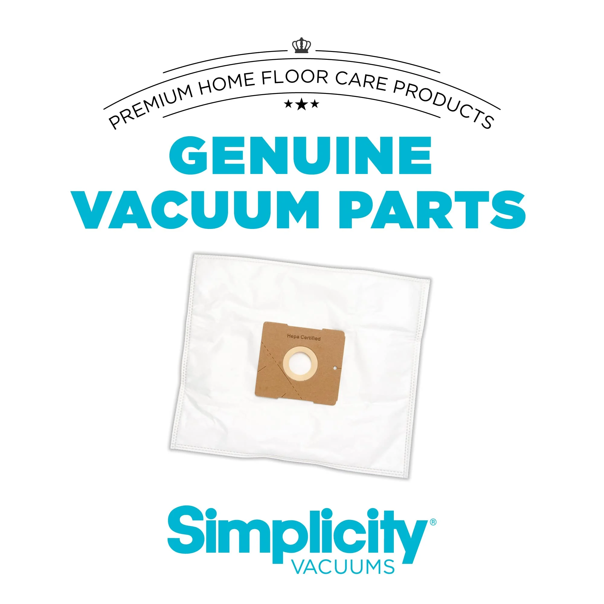 Includes a set of six Genuine Type Z Simplicity SZH-6 vacuum bags with HEPA media filtration
