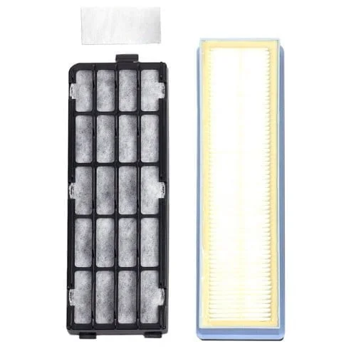 The Simplicity Genuine HEPA Plus and Granulated Charcoal Filter Set for Synergy G9 (SF9UG-1) is a replacement set of filters that fit the Simplicity Synergy G9 Upright Vacuum Cleaner. The set includes one HEPA Plus media filter, one granulated charcoal filter and one direct air motor filter. HEPA media filters boast a filtration standard of 99.97% efficiency at 0.3 microns. Granulated charcoal filters capture odors from escaping back into the air while the direct air motor filter protects the direct air motor from debris. Replace your filters regularly to maintain the best possible filtration and suction performance. This filter set will not fit the Synergy X9 model. Instead, see the SF9G-1 filter set. Dimensions: HEPA: 10”L, Charcoal: 9”L with black plastic casing.