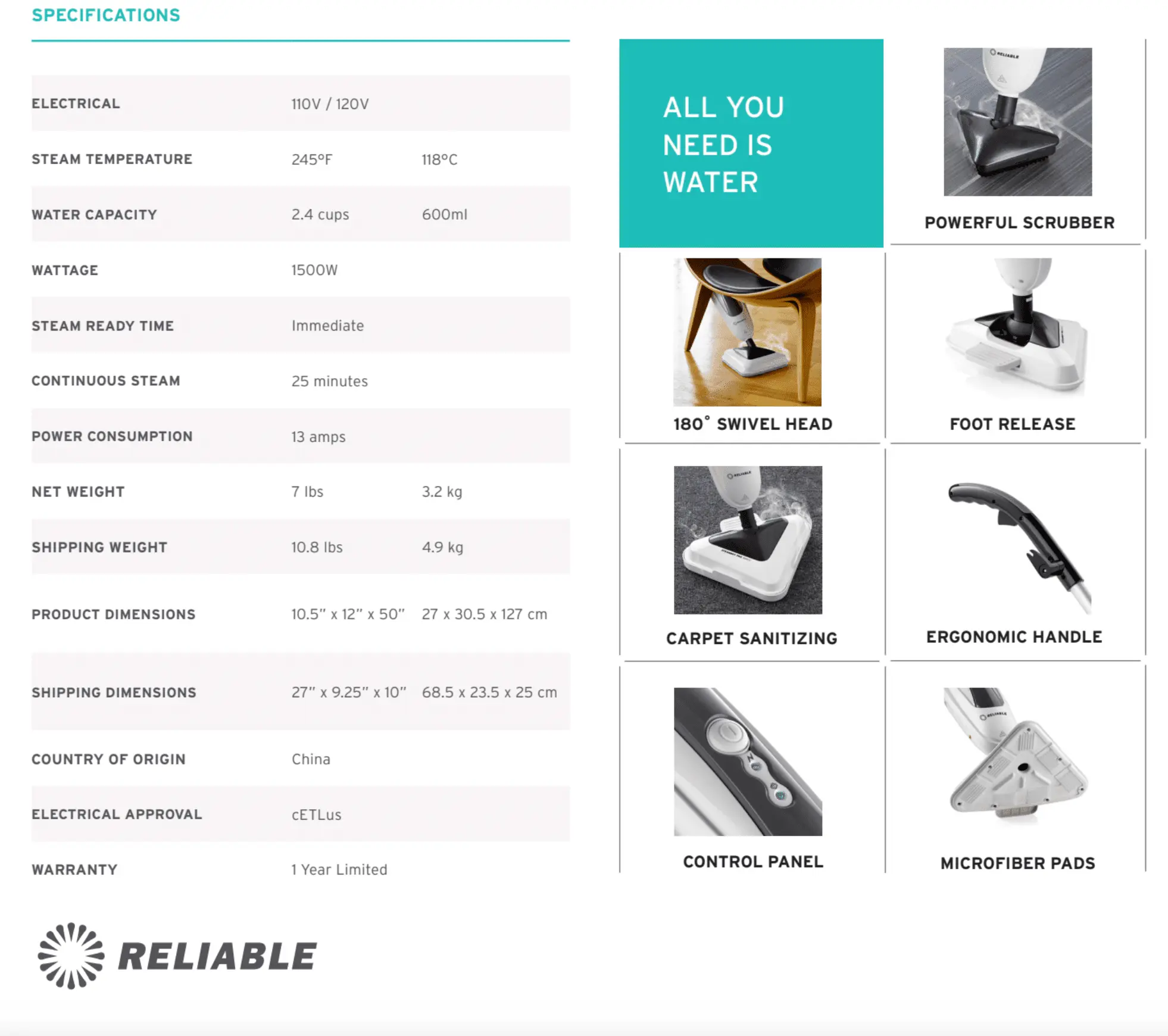 Reliable Steamboy 300CU Spec sheet