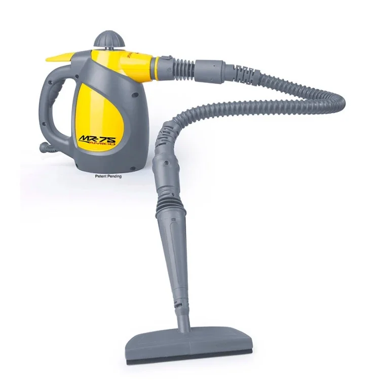 Technical • Model: Mr-75 Amico • Power: 115 V 60 Hz • Heating Element: 1000 W • Steam Pressure: 43.5 Psi • Boiler Temp: 210° F • Tank Capacity: 6.7 Fl Oz • Heating Time: 4 Min • Power Cord Length: 10′ • Steam Hose Length 3′ • Weight: 3.5 Lbs • ETL Certified • UPC: 860390000048 |